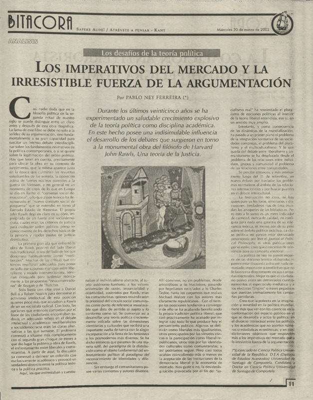 Los imperativos del mercado y la irresistible fuerza de la argumentación : los desafíos de la teoría política