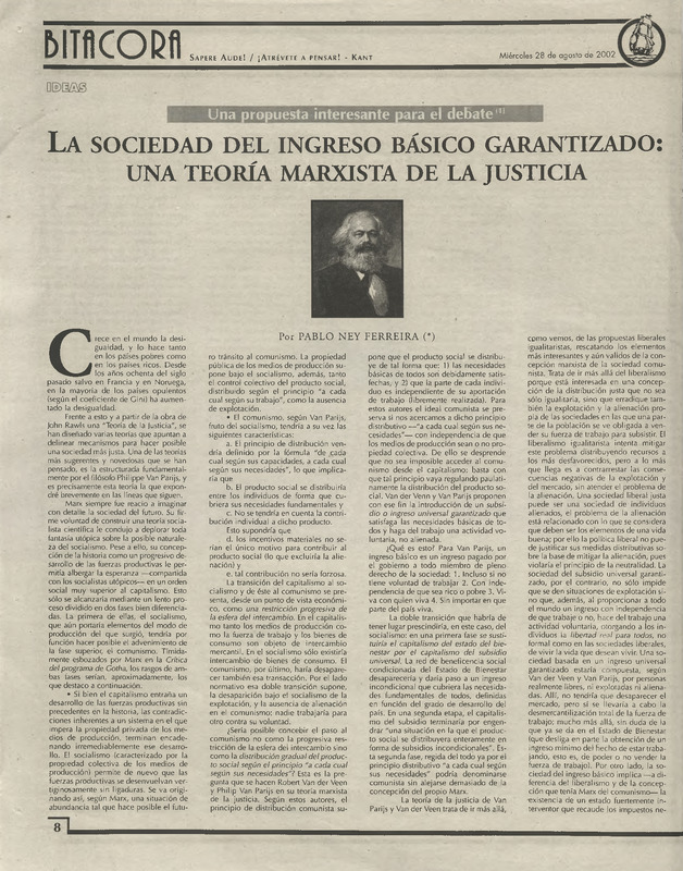 - La sociedad del ingreso básico garantizado : una teoría marxista de la justicia