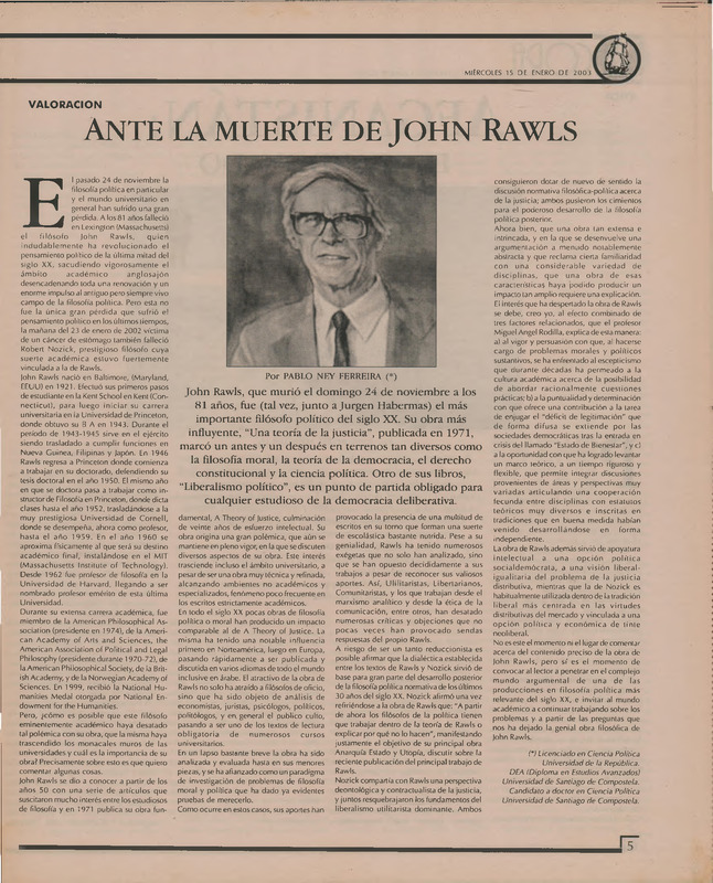 - Ante la muerte de John Rawls
