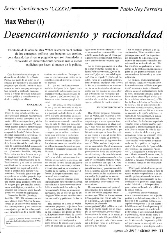 Max Weber (I) : desencantamiento y racionalidad