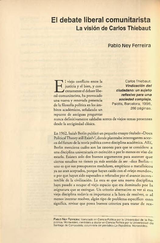 El debate liberal comunitarista : la visión de Carlos Thiebaut